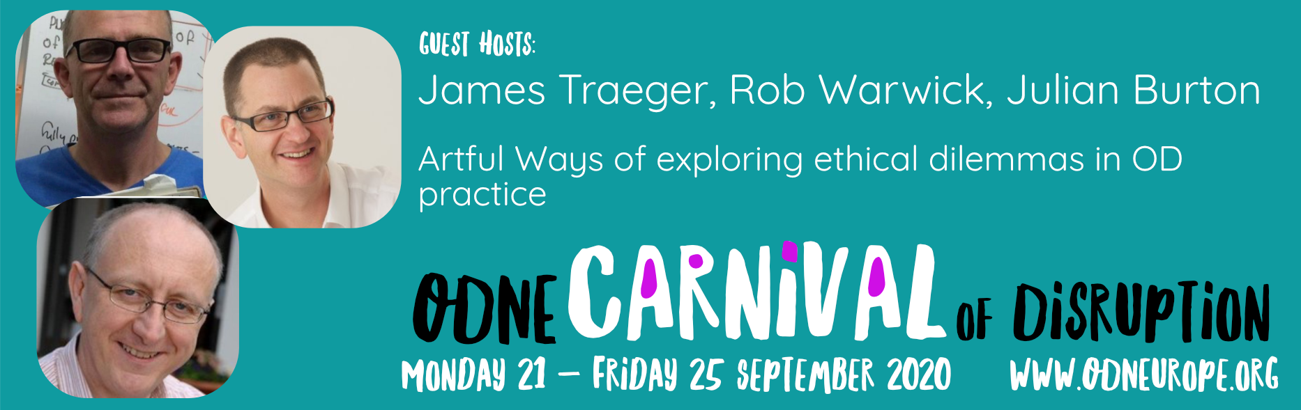James Traeger, Rob Warwick and Julian Burton have been exploring a way of combining their shared inquiry into ethical OD practice with artful ways of looking ethical dilemmas in our work and using different kinds of expression and other ways of knowing.